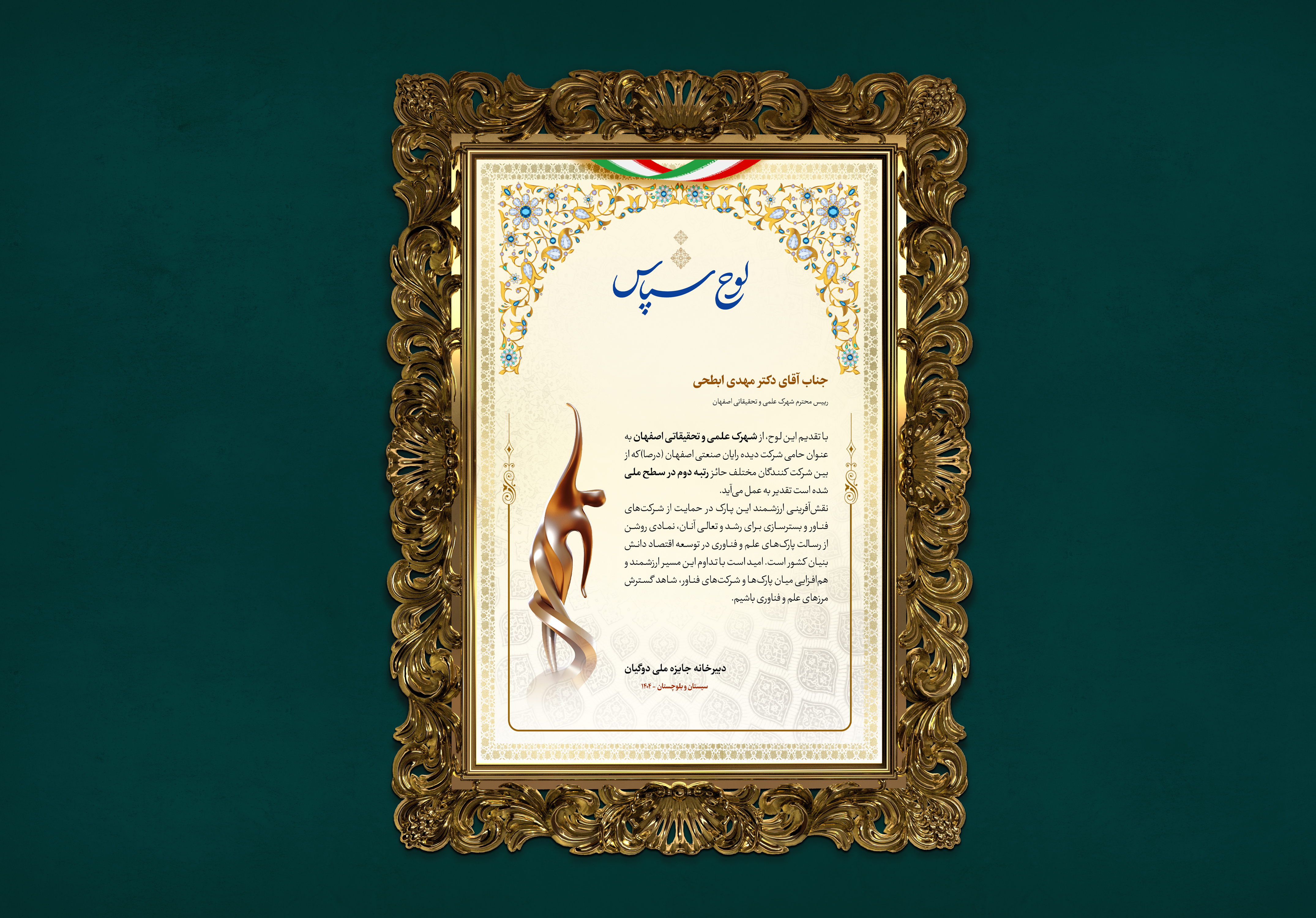 شرکت دانش بنیان دیده رایان صنعتی اصفهان (درصا)، تحت حمایت شهرک علمی و تحقیقاتی اصفهان برگزیده رتبه دوم کشوری جایزه دوگیان 1404